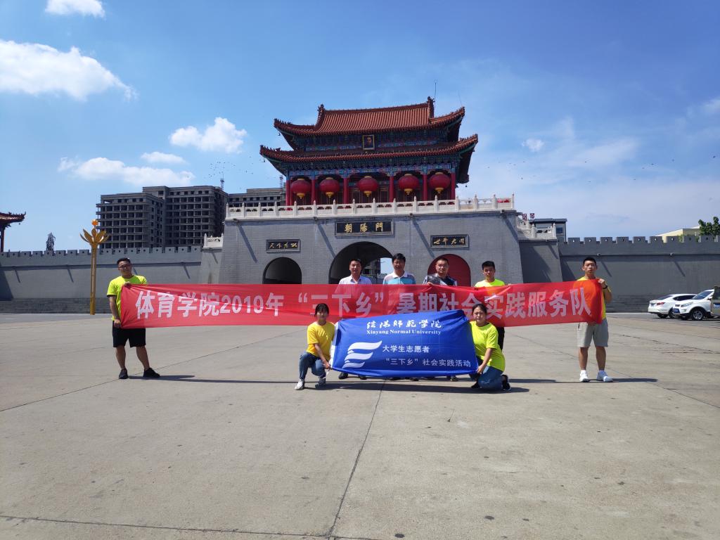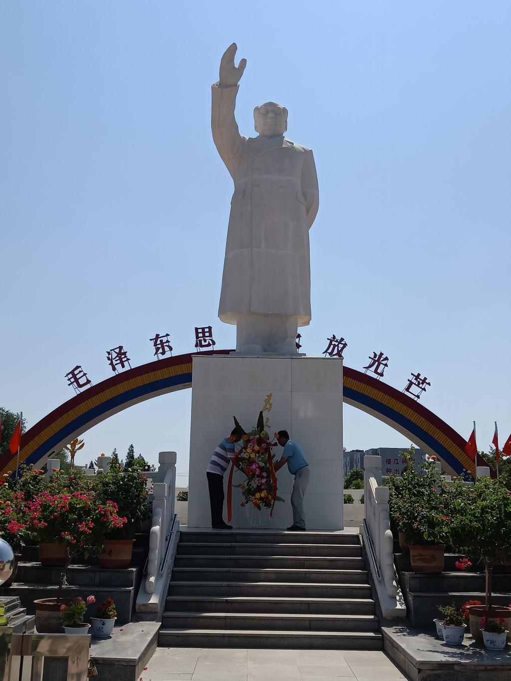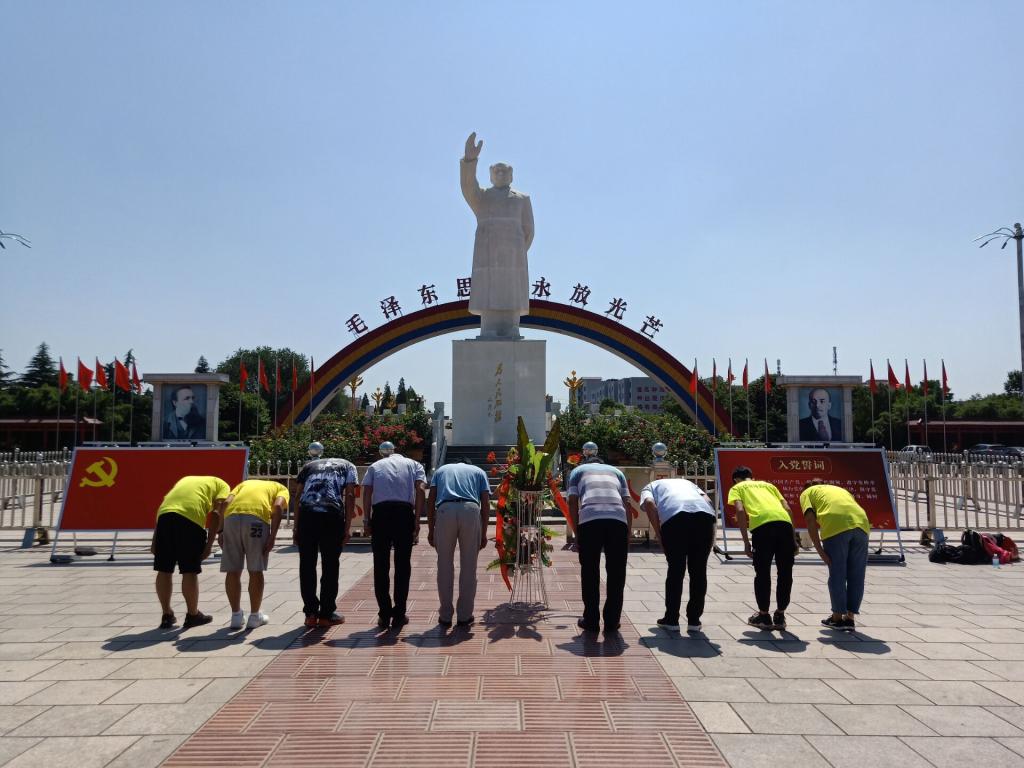 7月7日上午,金年会jinnianhuicom“三下乡”社会实践志愿二队在公司党委书记陈青、副经理牛林杰、副处级辅导员柴九昌、党委委员球类教研室主任刘波、分团委书记鲁枝鑫等多位老师的带领下,前往漯河市南街村进行实地调研。到达南街村后,志愿队先是参观了朝阳门的宏伟壮阔。而后在南街村东方红广场举行献花仪式,重温入党誓词,以向革命先驱致敬!
