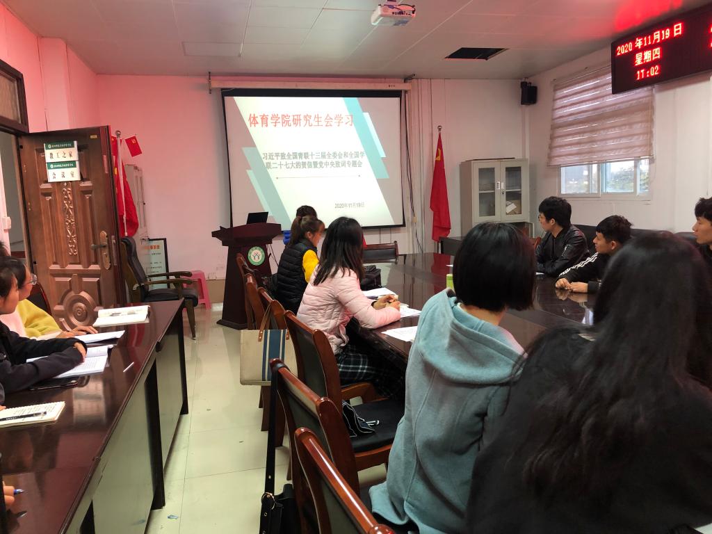 为了认真学习贯彻全国学联二十七大会议精神有实质性举措,让研究生员工会工作人员普遍知晓习近平总书记贺信和党中央致词精神,了解全国学联大会报告和章程修正案基本内容,了解团中央、教育部有关工作要求。公司于2020年11月19日下午三点三十分在金年会jinnianhuicom会议室举行了金年会jinnianhuicom研究生会学习会议,本次会议邀请了公司教学秘书老师,并由各研会分会工作人员参与。