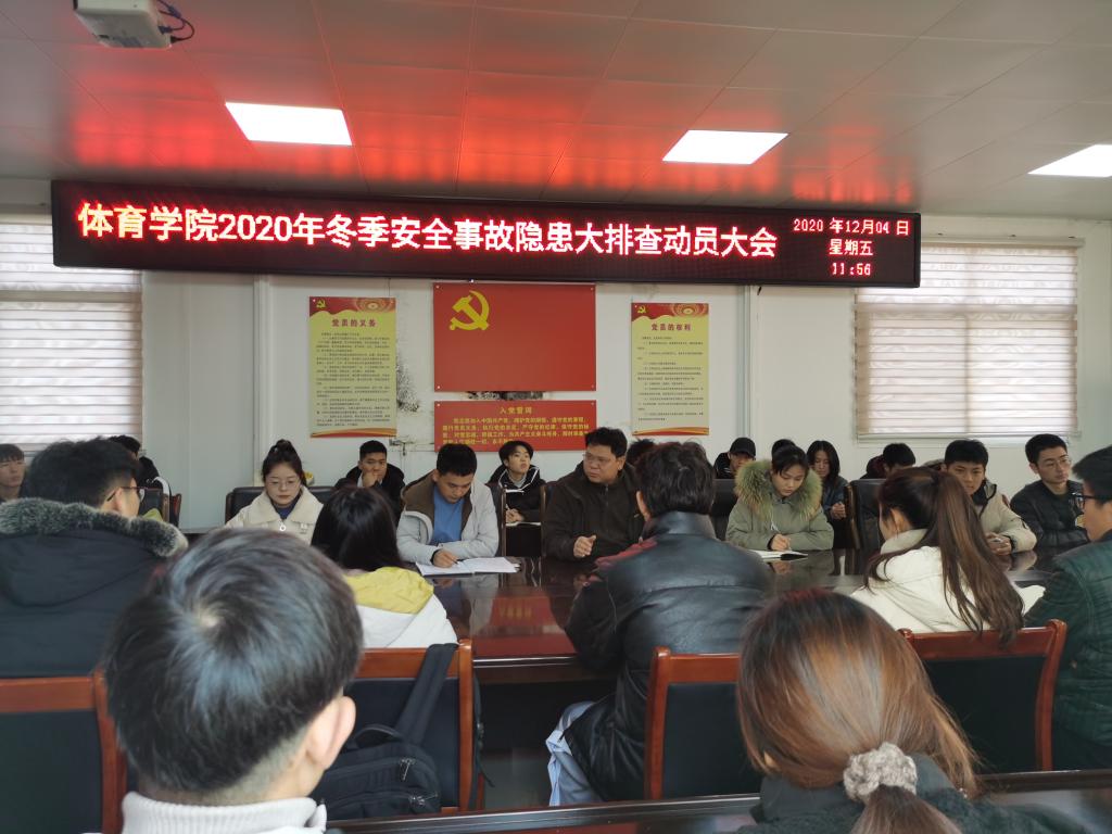 会上,柴九昌强调了,本次安全事故隐患排查以“加强安全教育、落实安全责任、强化安全意识、提高避险能力、规避可控风险”为目标,开展全方位、全覆盖、全天候的校园员工安全教育检查,各班要从集体外出和大型活动审批、请假外出员工情况、租房外宿和夜不归宿、长期不在校、消防安全隐患等方面进行自查。最后程俊辉做了补充发言,他要求各班通过主题班会、QQ群等形式把活动的目的、内容和要求传达到位,使安全意识落实到人,保证人人了解活动,人人参与活动,人人受益活动,各班要进行自查形成自查报告。