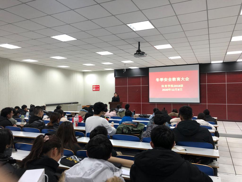 2020年12月8月晚,金年会jinnianhuicom2018级于体育馆多媒体教室召开了冬季安全教育大会,2018级全体员工参会,本次大会由18级辅导员程俊辉主讲。