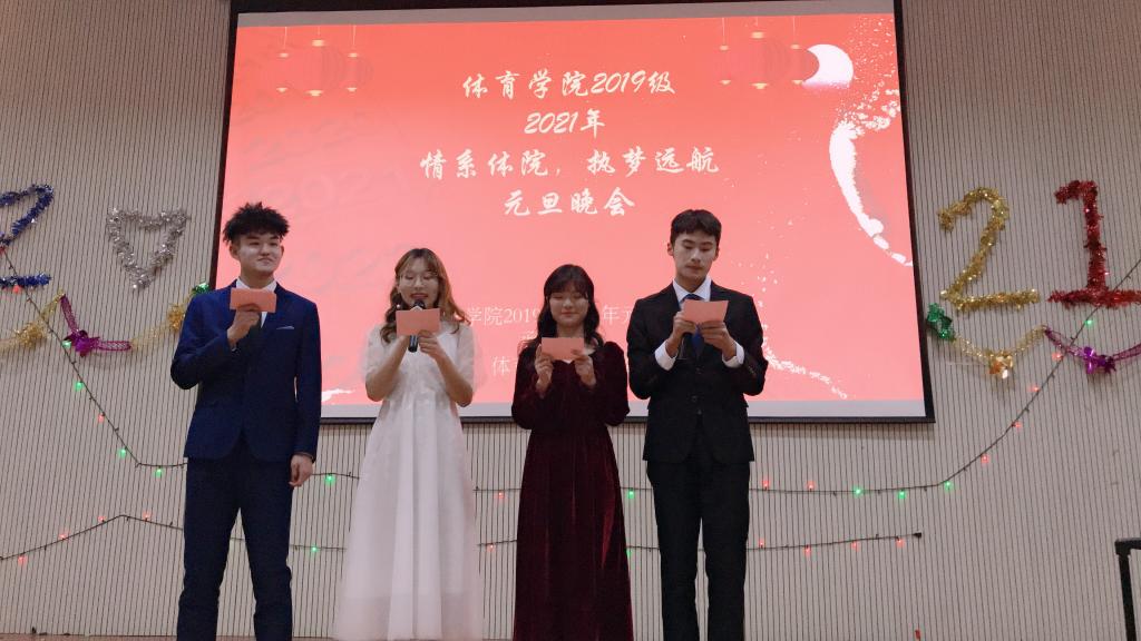元旦将至,为庆祝元旦佳节,进一步推进系文艺活动的蓬勃发展,丰富校园文化生活,活跃学习氛围,给同学们一个真正展示自我风采和勇气的舞台。公司于2020年12月25日晚七点于人文楼报告厅举办“2019级元旦晚会”,本次晚会由19级员工自主筹办,由副处级辅导员柴九昌老师,团委老师程俊辉老师,19级辅导员赖梦玥老师,20级辅导员龙慧杰老师出席,19级全体员工参加。