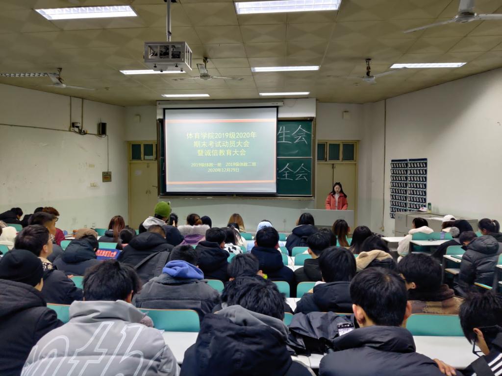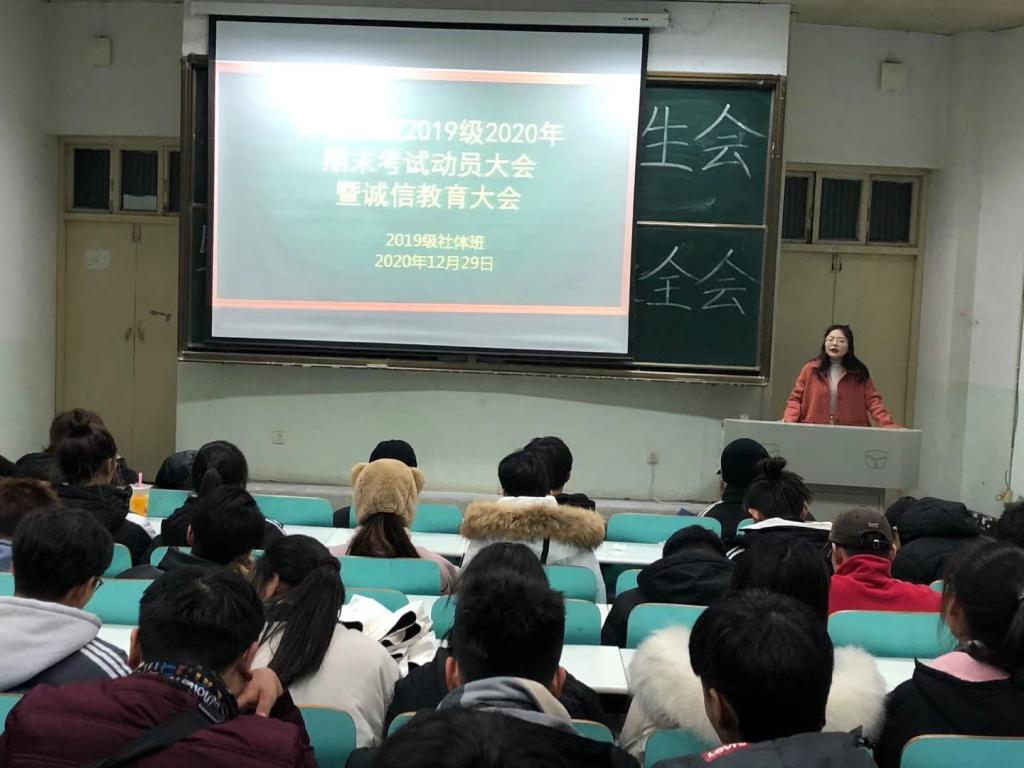为了迎接马上到来的期末考试,2020年12月29日,金年会jinnianhuicom2019级同学在人文楼109举行了期末考试动员大会暨诚信教育大会。2019级辅导员赖梦玥老师主持本次会议,2019级体育教育专业和社会体育指导与管理专业全体员工参与会议。