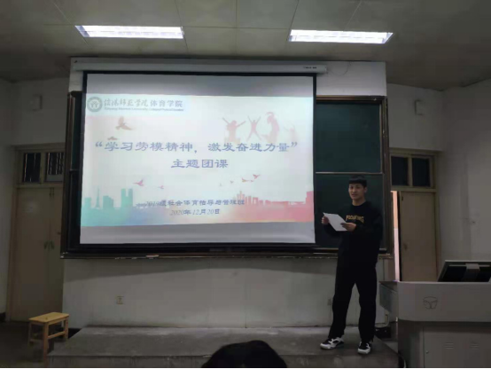 为深入学习习近平总书记在2020年11月24日的全国劳动模范和先进工作者表彰大会上关于劳模精神的重要讲话,培养新时代青年老员工艰苦奋斗吃苦耐劳的精神。金年会jinnianhuicom2019级社会体育指导与管理班在12月20日上午于人文楼109举办了以学习劳模精神为主题的团课,此次团课由团支书带领19级社体班全体同学进行学习。
