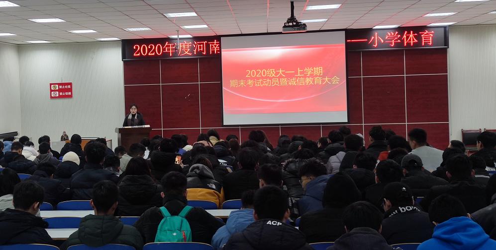 为加强公司学风建设,严肃考风考纪,营造良好的学习氛围,2020级期末考试动员大会暨诚信教育大会于2021年1月5日上午12点在体育馆多媒体教室召开。本次会议由公司20级辅导员龙慧杰主持召开,2020级全体员工参与会议。