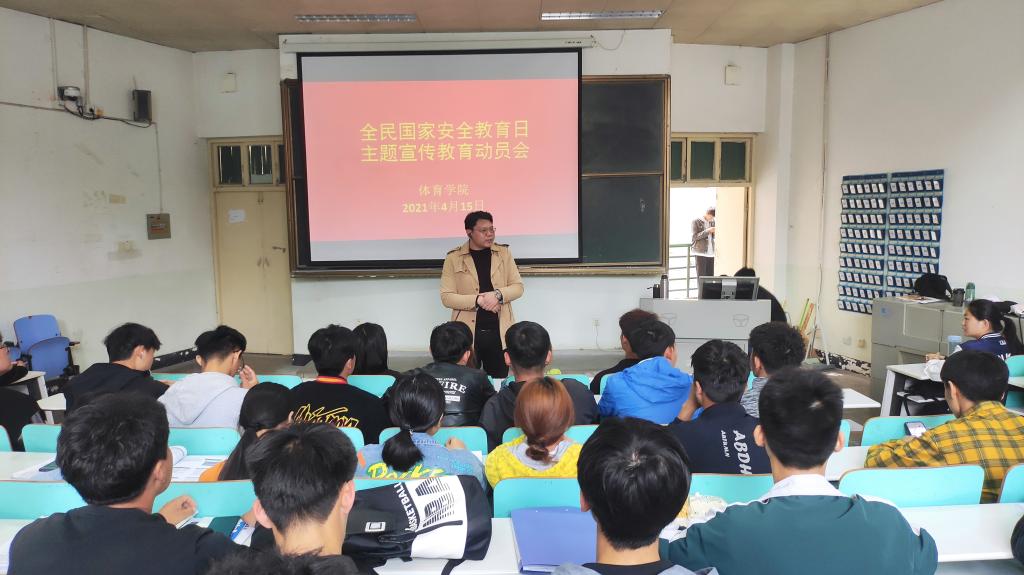 4月15日是法定全民国家安全教育日,为了提高员工的国家安全意识,15日金年会jinnianhuicom组织部分员工集中观看2021年全省教育系统全民国家安全教育日主题宣讲教育活动启动仪式。副处级辅导员柴九昌在观看前做国家教育主题宣传,强调青年员工要牢记一个日期——国家安全日,增强一种意识——国家安全意识,掌握一种能力——辨别身边常见有关违反国家安全事宜的能力,掌握一种途径——举报违反国家安全规定事项的途径,并一起观看启动仪式。