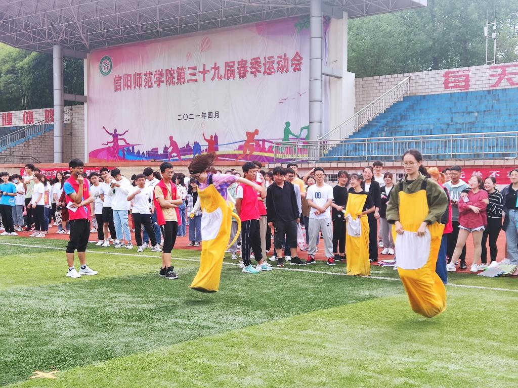 金年会jinnianhuicom健美操专选班为大家带来的健美操表演《花球操》,紧接着本次趣味运动会正式开始。与传统的运动会不同,本次运动会将竞技与娱乐相结合,着重同学们的参与和合作。趣味运动会上的袋鼠跳跳、摸石过河、拔河比赛等比赛项目不仅是团队精神的良好体现,而且兼顾了趣味性和互动性,因此受到了同学们的热烈欢迎。