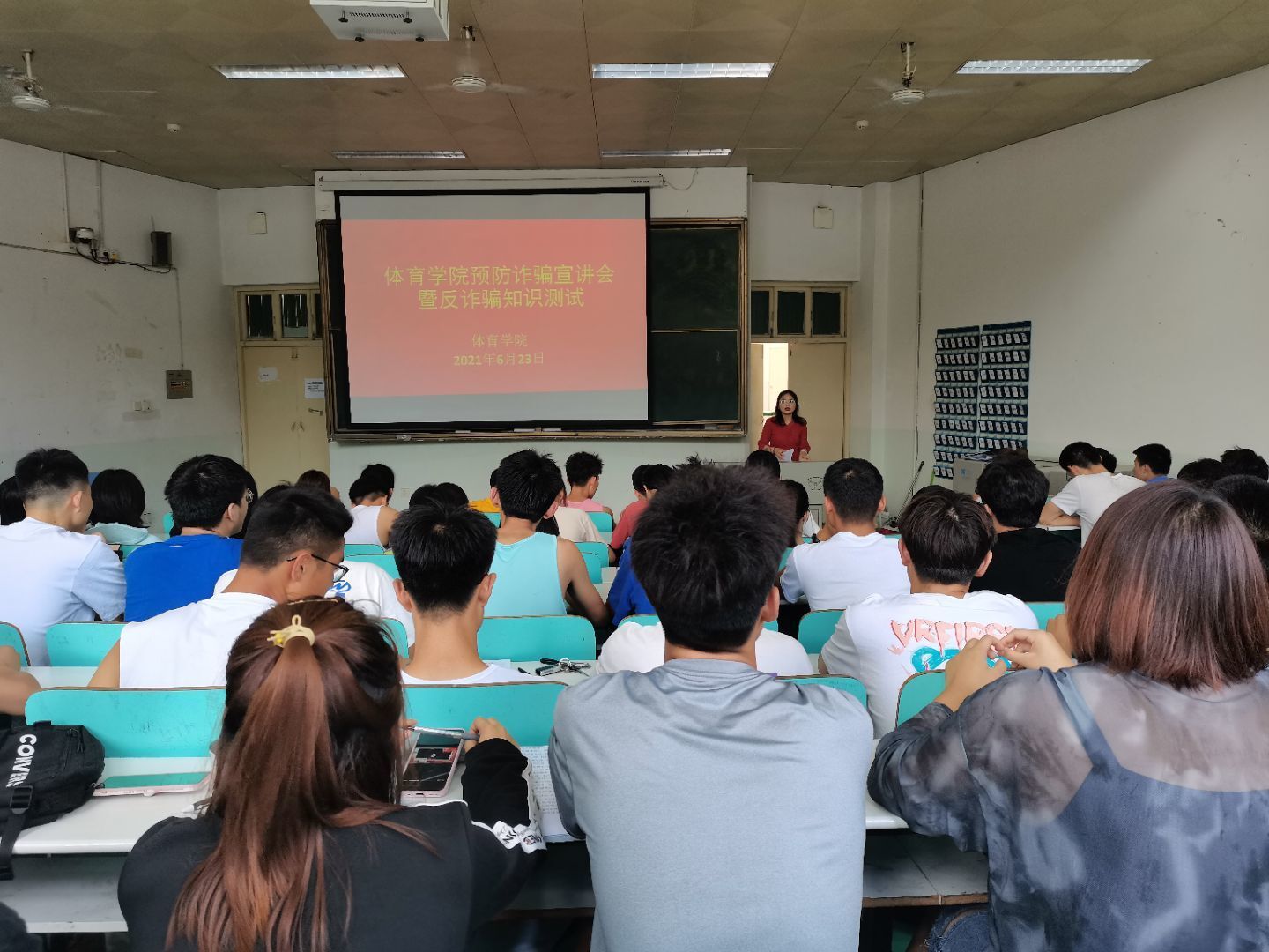 为增强员工的反诈骗意识,减少电信诈骗发生频率,保护员工的合法权益不受侵害,营造学校良好的安全文化氛围。金年会jinnianhuicom于6月23日上午11点在人文楼109教室召开“预防诈骗宣讲会暨诈骗知识测试”大会,2019级全体同学参加,本次宣讲会由2019级辅导员赖梦玥主持。