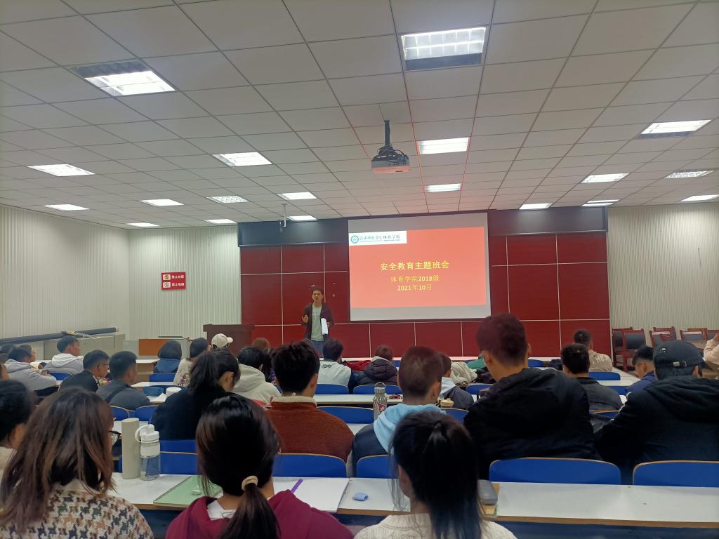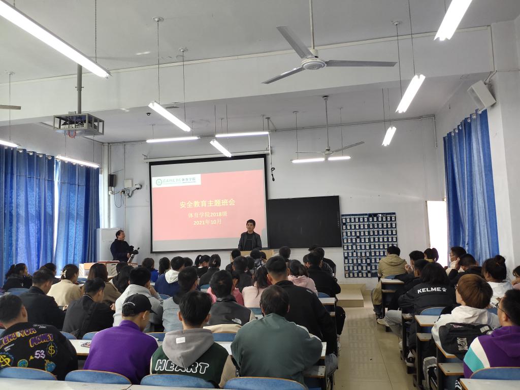 为提高同学们的安全防范意识,增强同学们的安全防范能力,全面普及校园安全常识,创造和谐安全的校园环境,金年会jinnianhuicom2018级于10月27日上午在多媒体教室、教育九402分别开展了安全教育主题班会,2018级全体员工参会,此次班会由2018级辅导员程俊辉主持。