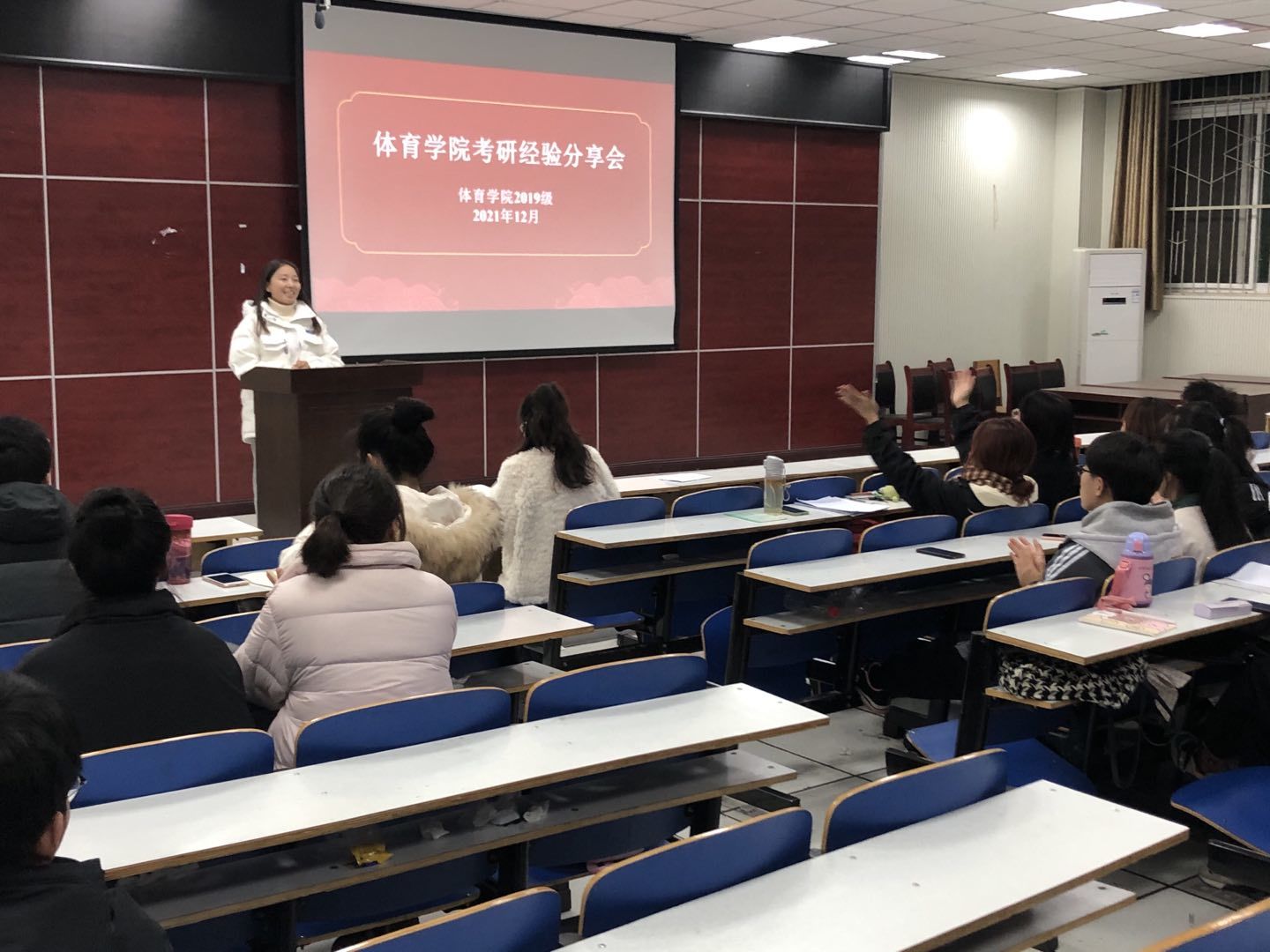 为加强员工对考研的了解,营造积极向上的学风,为想要考研的学子提供宝贵经验,12月8日晚,金年会jinnianhuicom2019级在体育馆多媒体教室举行考研经验分享会,会议由2019级辅导员赖梦玥主持,2019级全体员工参加。