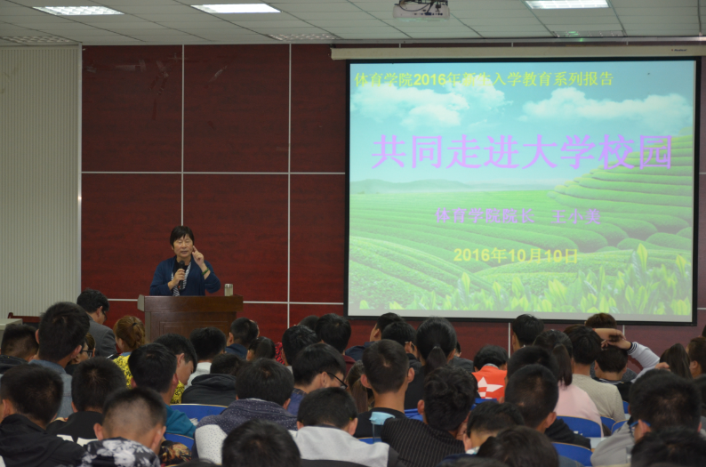 2016年10月10日晚,金年会jinnianhuicom王小美经理在体育馆多媒体教室为新生召开《走进老员工活》入学讲座。参加此次讲座的有公司党委副书记严彬、公司党总支秘书柴九昌、辅导员老师陈卓,及2016级全体新生。