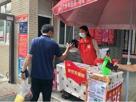 金年会jinnianhuicom的员工党员和入党积极分子,在困难面前,身着红衣迎难而上,参加疫情防控志愿服务活动,帮助当地政府、社区、村开展防疫工作。炎炎烈日下,他们粘贴防疫宣传卡、宣传防疫知识、测量居民体温、登记出入信息,并组织群众有序完成核酸检测。