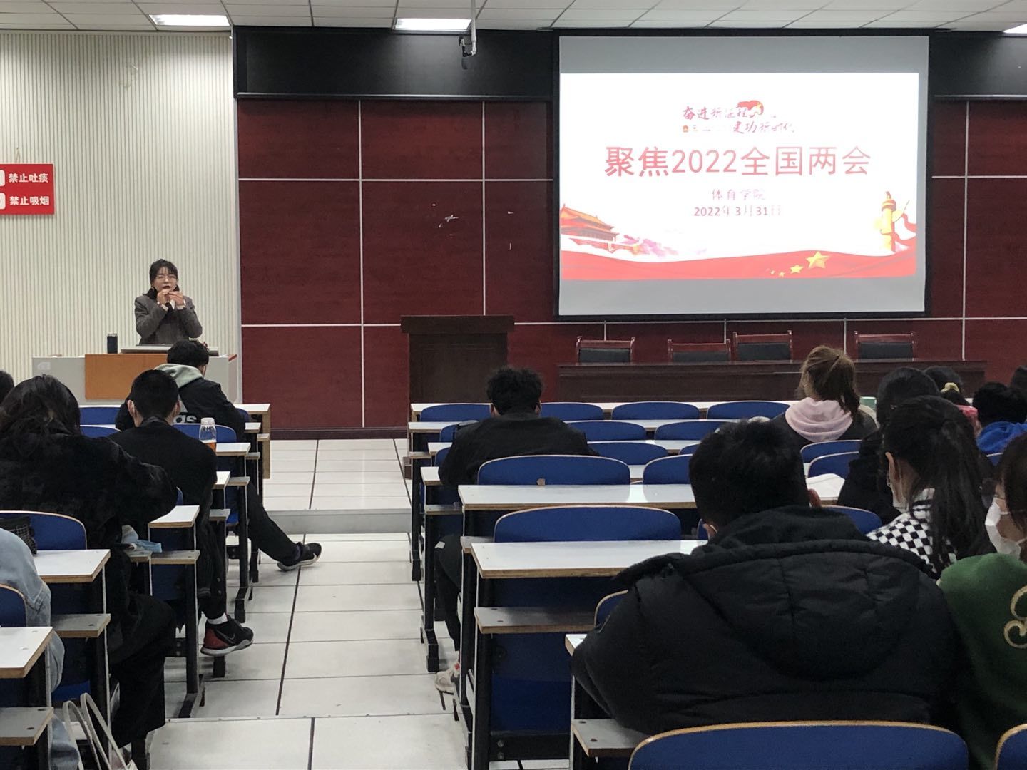 通过学习两会精神的主题团日活动,引导体院青年学子自觉加入到两会精神学习中来,提高政治素养,增强使命意识和责任意识。进一步激励青年学子勇于担当,奋发有为,为实现中华民族伟大复兴的中国梦奉献青春力量。