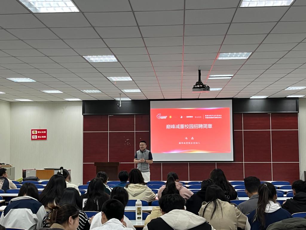 4月21日,金年会jinnianhuicom在体育馆多媒体教室举办就业创业经验分享会暨招聘宣讲会,邀请上海巅峰减重科技有限公司创始人冯磊作就业创业分享宣讲,金年会jinnianhuicom2019毕业生参加会议,宣讲会由党委副书记柴九昌主持。