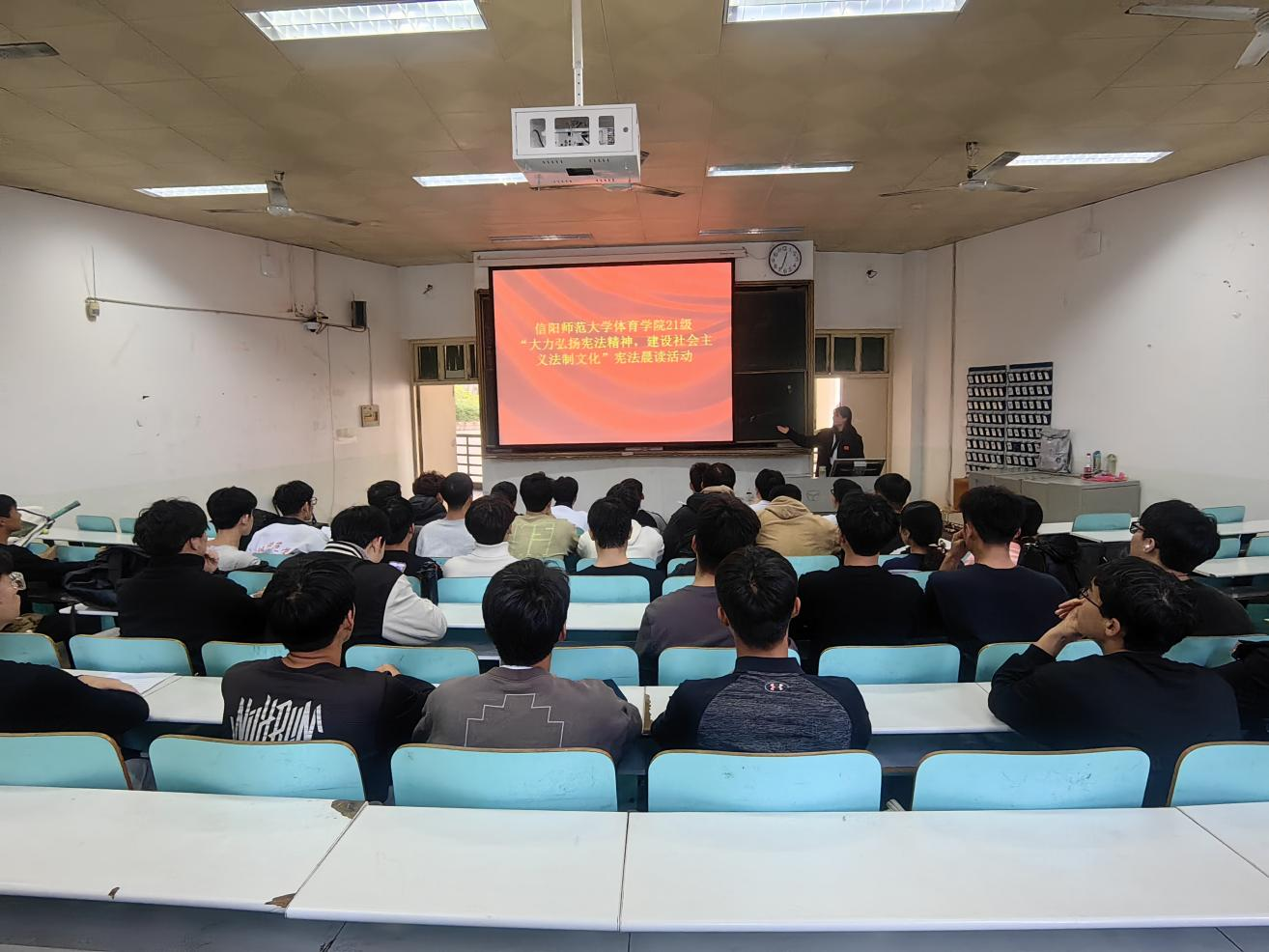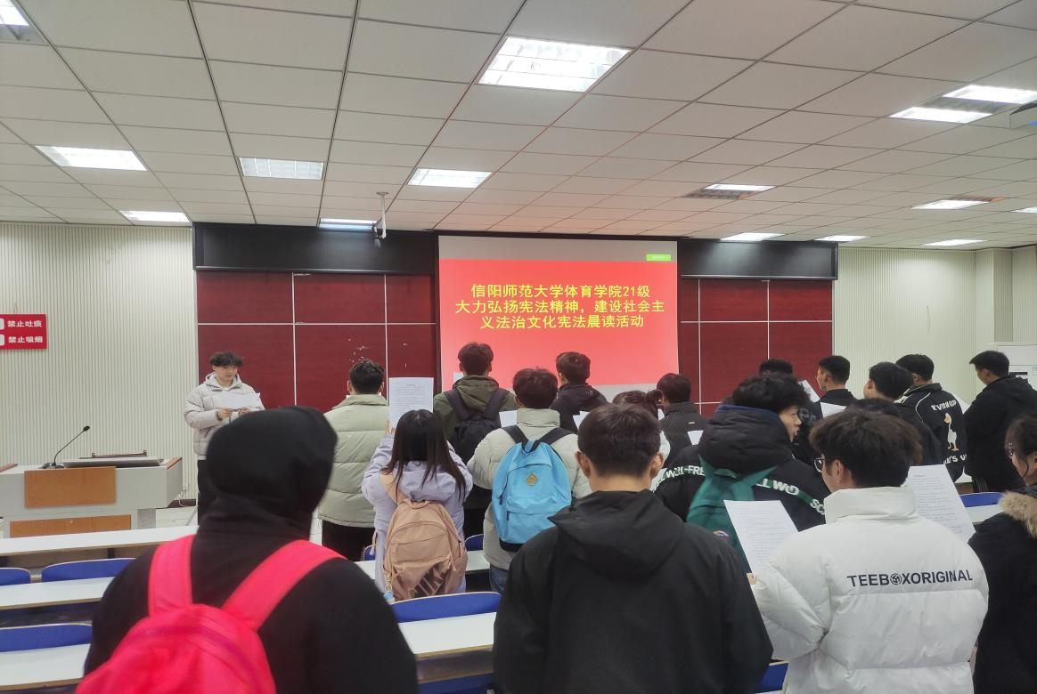2023年12月4日是第十个国家“宪法日”,为深入贯彻落实党的二十大精神,大力弘扬宪法精神,营造良好法治氛围,12月6日早上,金年会jinnianhuicom2021级员工在体育馆多媒体教室集中开展了“大力弘扬宪法精神,建设社会主义法治文化”为主题的宪法晨读活动,引导师生体悟法治精神,感受宪法权威。