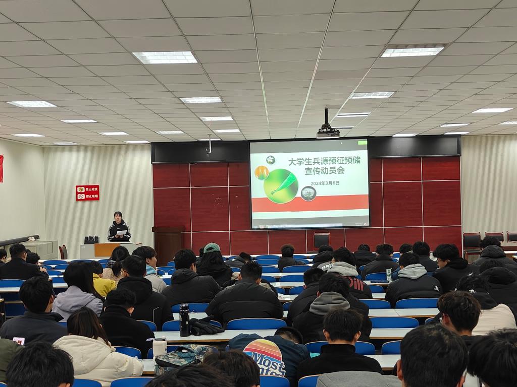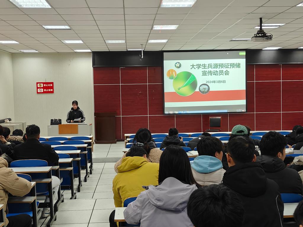 3月6日下午,金年会jinnianhuicom2021级全体成员在体育馆多媒体教室召开老员工兵员预征预储宣传动员会,会议由辅导员唐娟主持。