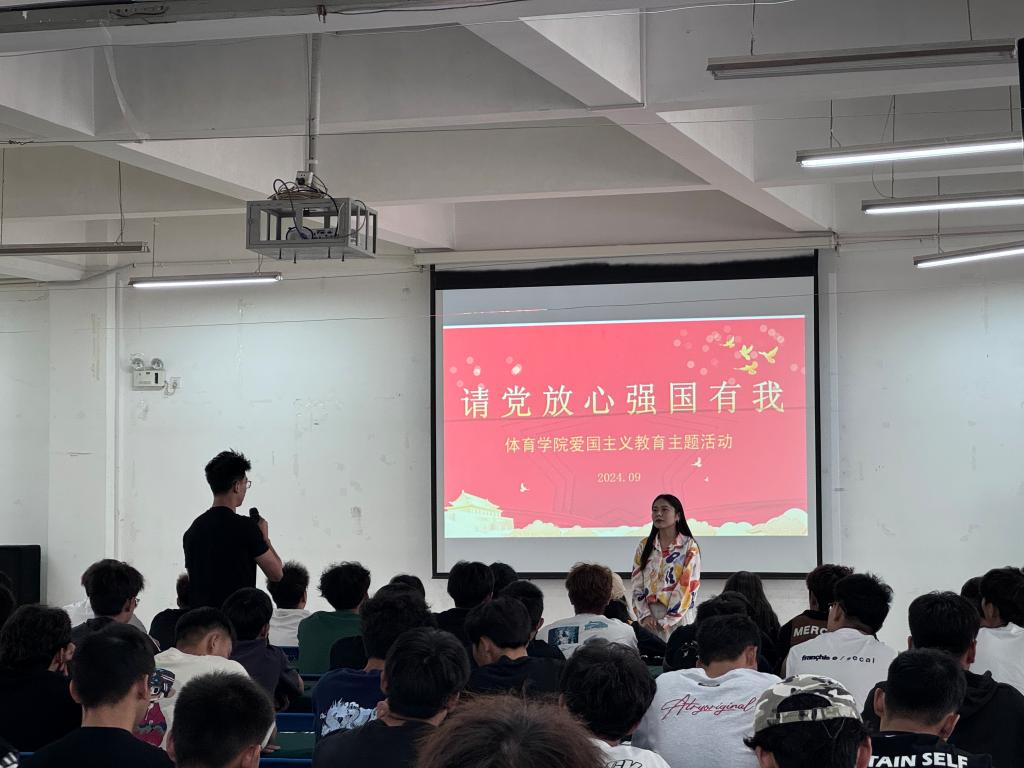 为进一步弘扬爱国主义精神,激发员工的爱国热情,9月21日,体育公司于“一站式”员工活动中心开展“请党放心,强国有我”为主题的爱国主义教育活动。学院2024级专职辅导员赖梦玥及全体新生参加本次活动。