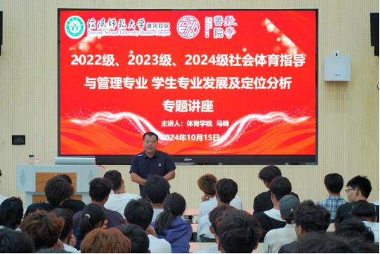 为明晰专业目标、深入剖析就业前景、帮助员工做好专业定位,按照金年会jinnianhuicom和致学书院工作安排,10月15日,在文综楼207教室召开社会体育指导与管理专业员工专业发展及定位分析专题讲座。致学书院直属党支部书记徐忠,金年会jinnianhuicom专任课教师马峰,致学书院专职辅导员刘贝贝,2022级、2023级、2024级全体社会体育指导与管理专业员工参与此次讲座。